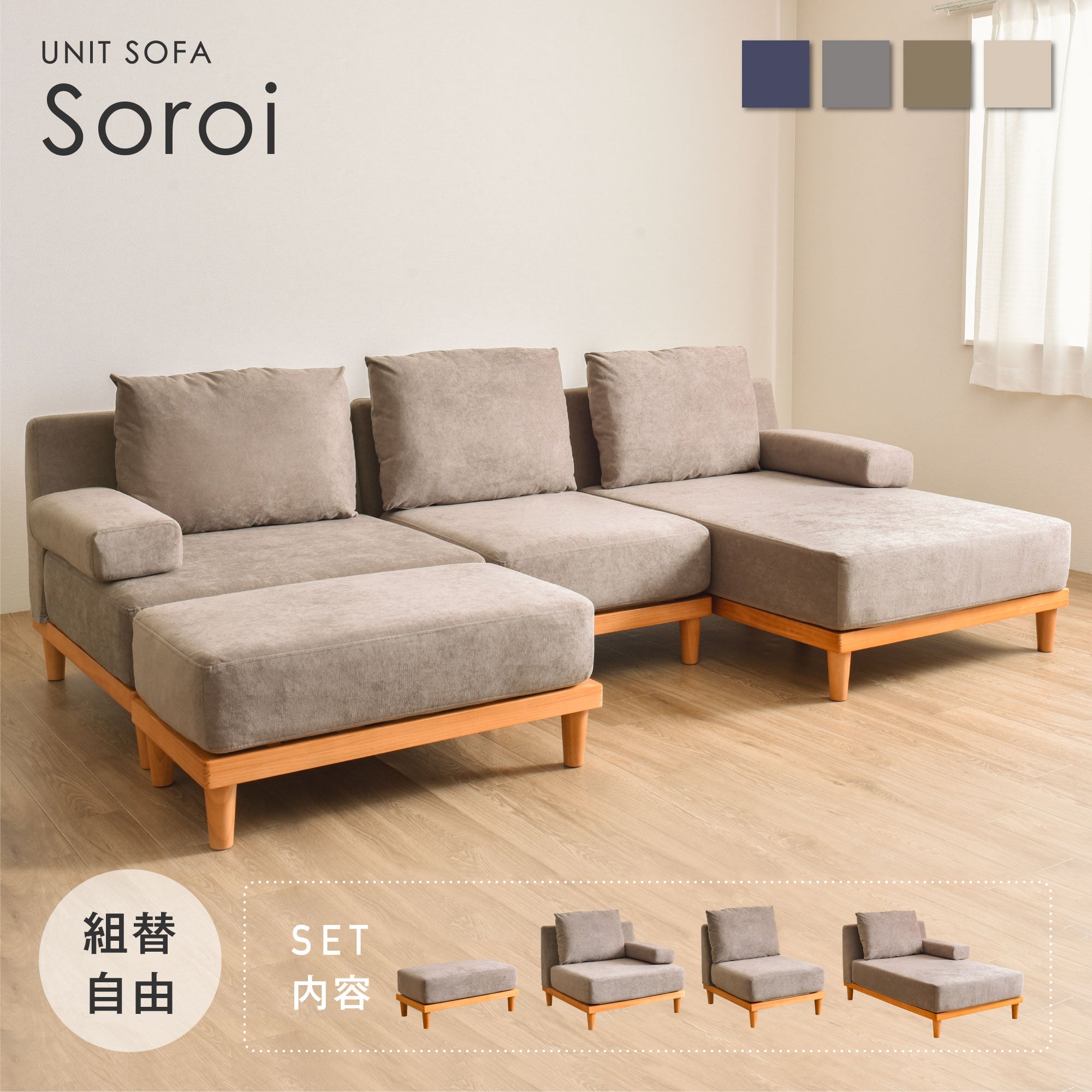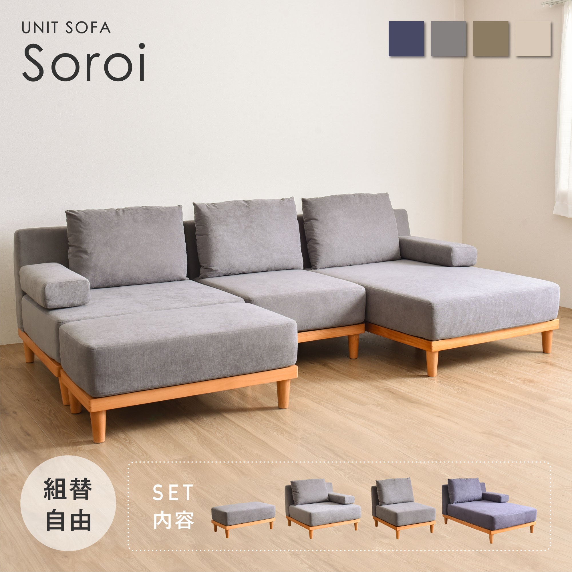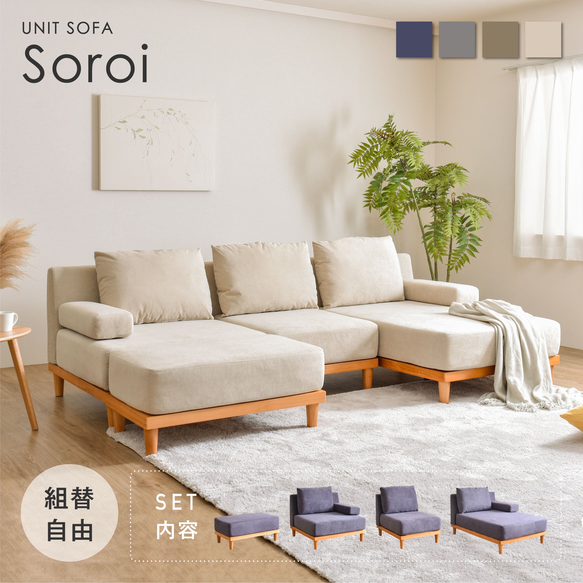 Soroi 3人掛け リビングソファ