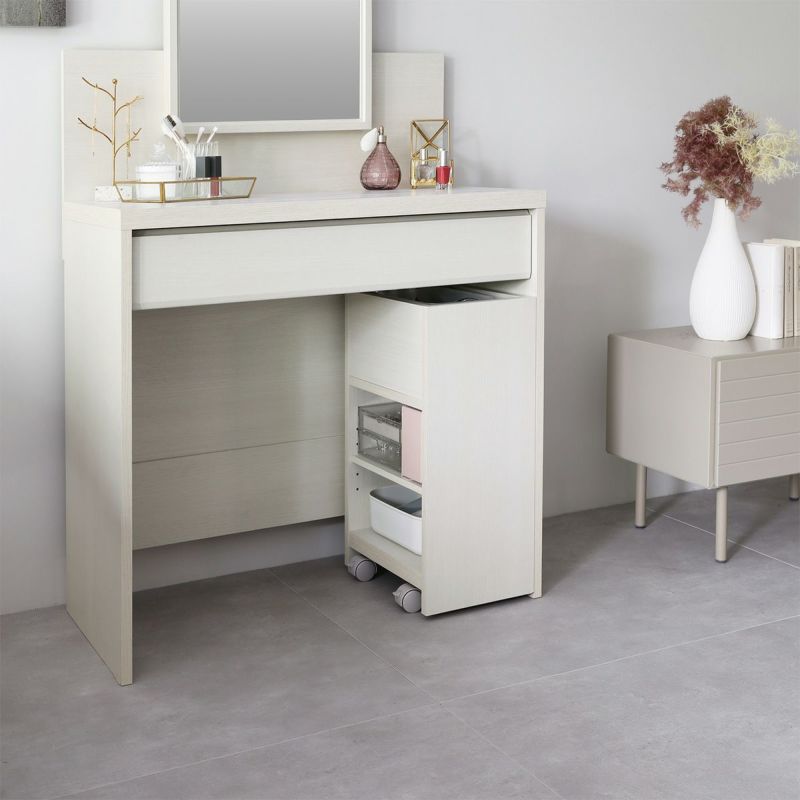 サイドワゴン ラック ドレッサー用 幅33cm 高さ56cm ホワイト 白木目 キャスター付 コスメ収納