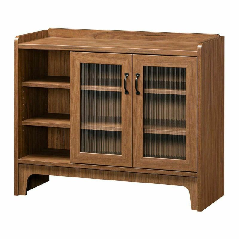 キャビネット 棚 幅90cm 高さ75cm ブラウン レトロ ヴィンテージ 型ガラス扉