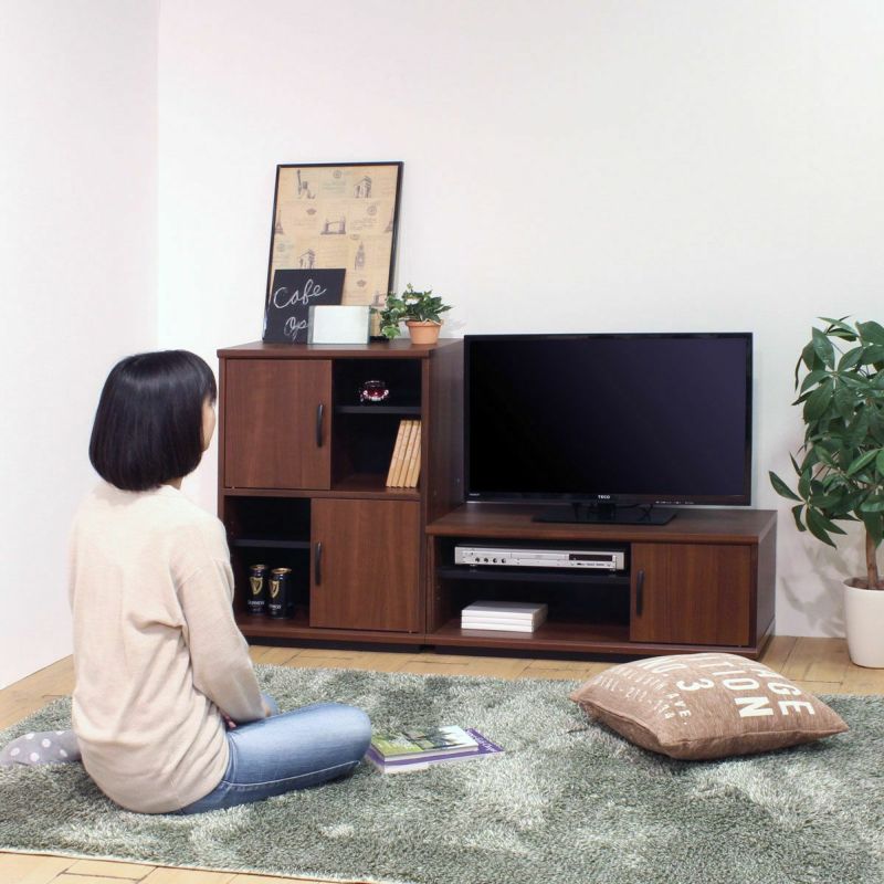 32型テレビ対応でワンルームなどの一人暮らしのお部屋にぴったりなサイズです。ブラックの取っ手が本体の落ち着いたダークブラウン色を引き締めます。
