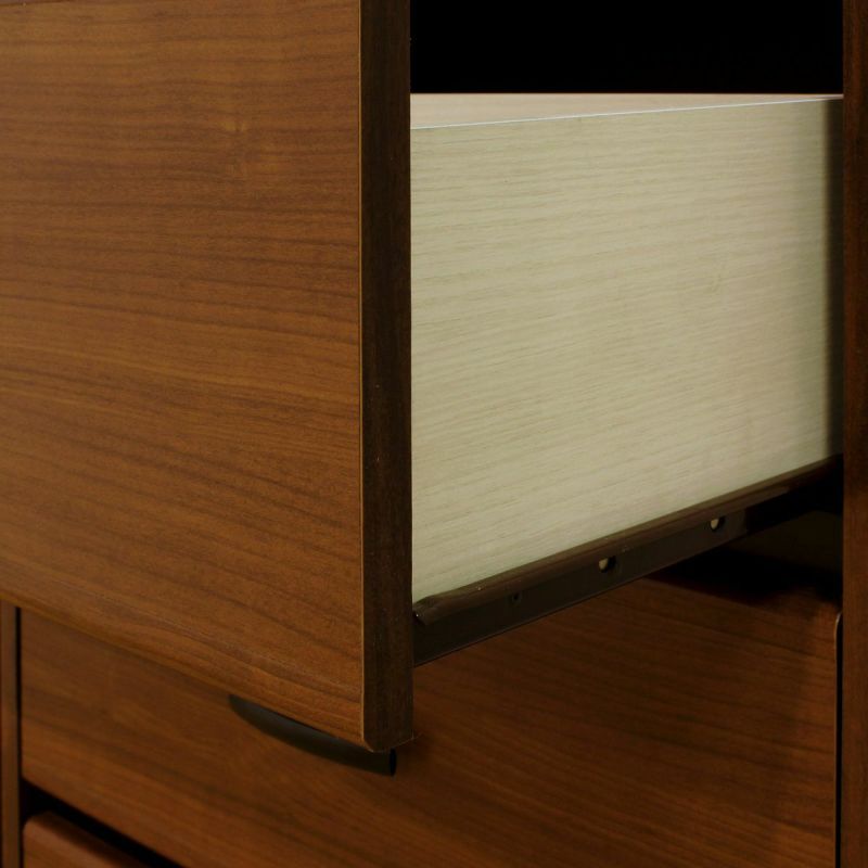 コンパクトなサイズだけど収納力も十分。ワンルームの暮らしにぴったりのチェストです。ブラックの取っ手が本体の落ち着いたダークブラウン色を引き締めます。金属レールを使った引き出しは滑らかな開閉。耐久性にも優れています。「フクイック」は、あらかじめ取り付けてある部品に接着剤をつけてパチッとはめるだけの引き出し簡単組立部品です。