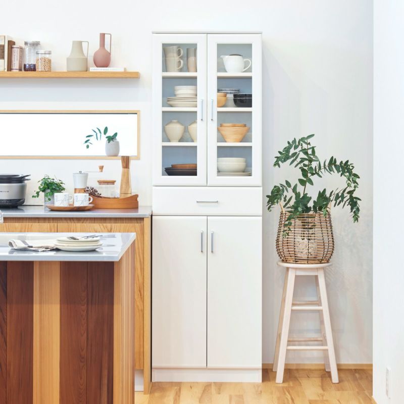 食器棚 幅57cm 高さ181cm ホワイト 白 キッチン収納 シンプル