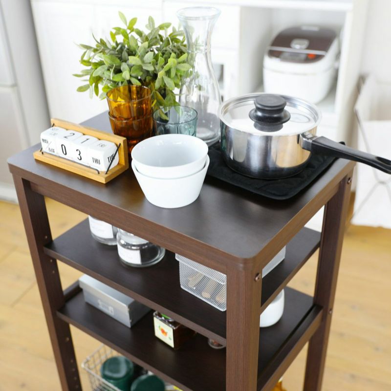 キッチンワゴン 3段 幅53cm 高さ85cm ダークブラウン メラミン天板 キャスター付 キッチン収納