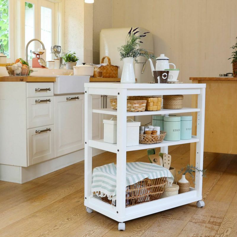 キッチンワゴン 3段 幅53cm 高さ85cm ホワイト 白 メラミン天板 キャスター付 キッチン収納