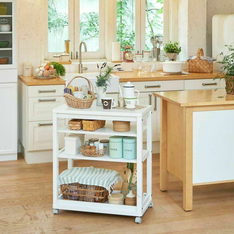 キッチンワゴン 3段 幅74cm 高さ85cm ホワイト 白 メラミン天板 キャスター付 キッチン収納