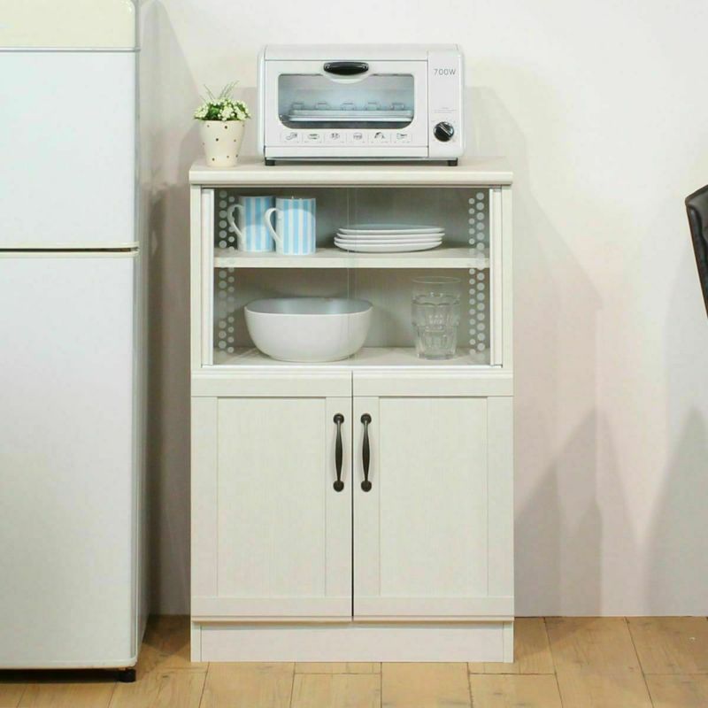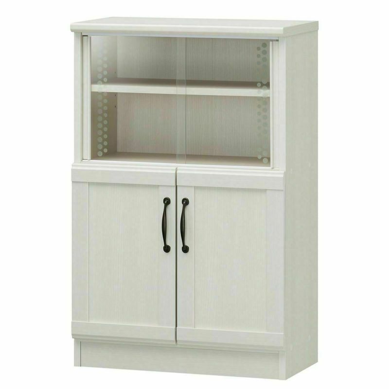 食器棚 幅57cm 高さ88cm ホワイト 白木目 ガラス 引き戸 ミニ サイズ キッチン収納 ドット柄ガラス
