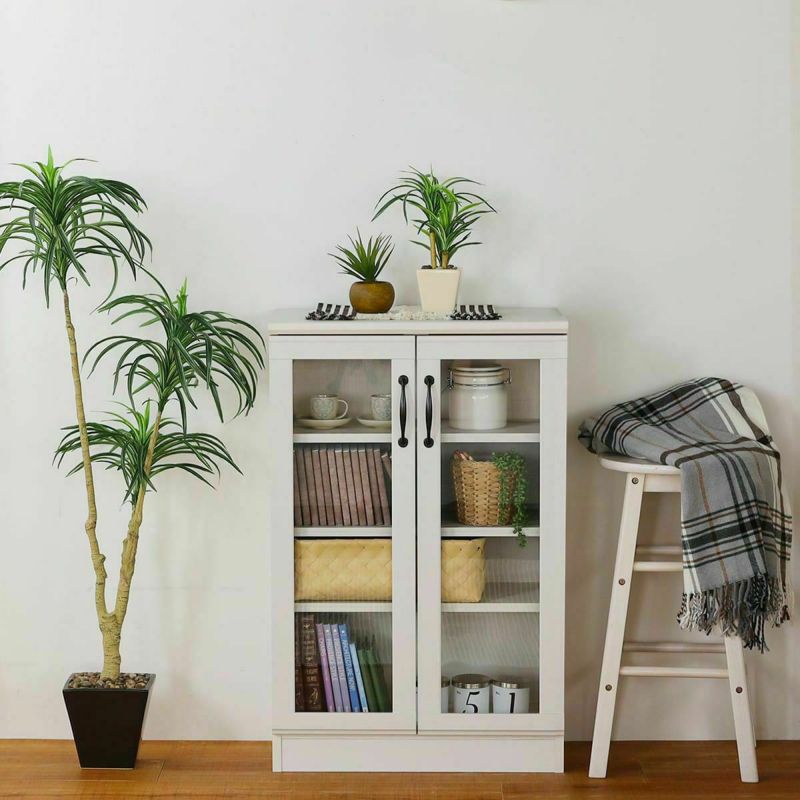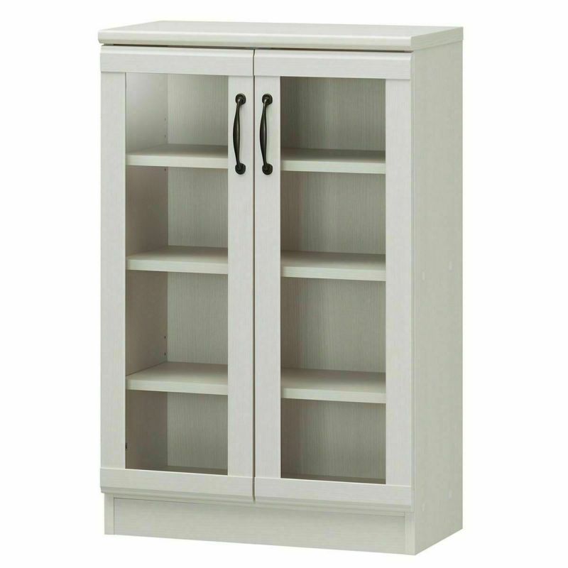 キャビネット 棚 幅57cm 高さ88cm ホワイト 白木目 ガラス扉 リビング 収納
