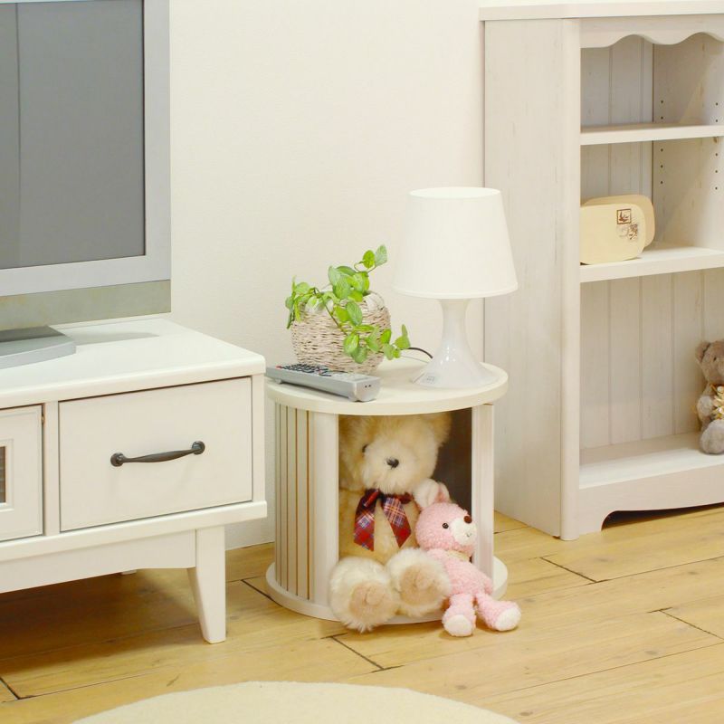 かわいらしくて新しい円柱フォルムのラック。様々なつかい方を楽しめます。円にそって開く扉の動きがユニークです。