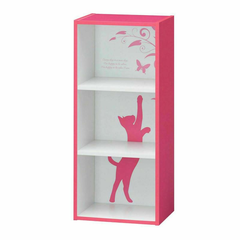 国産 カラーボックス 収納棚 幅39cm 高さ90cm ピンク 猫 デザイン 組み立て簡単 本棚 整理棚