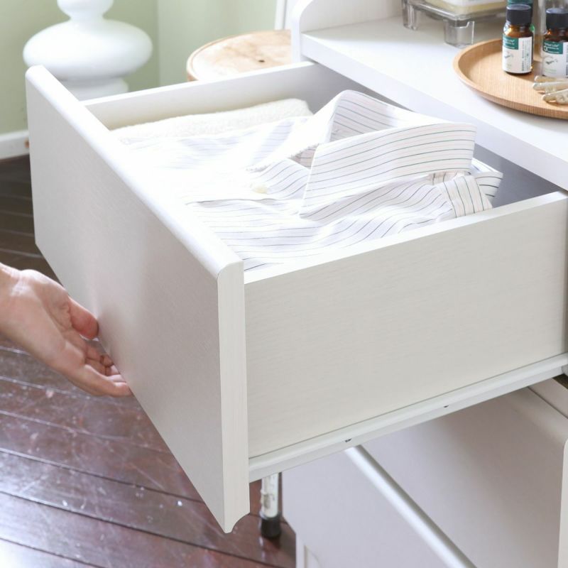 引き出しの上はオープンスペース。お気に入りの物を飾ったり、よく使うものをちょい置きしたりできます。