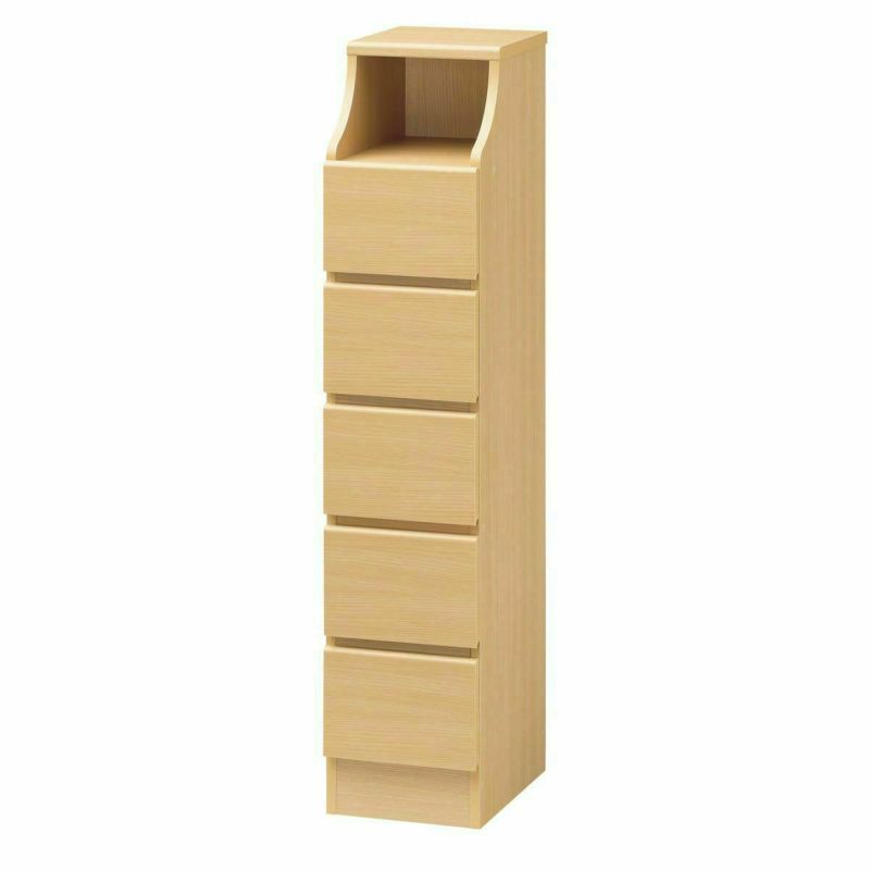 チェスト タンス 幅28cm 高さ133cm ナチュラルブラウン 配線穴付 スリム タイプ 衣類収納