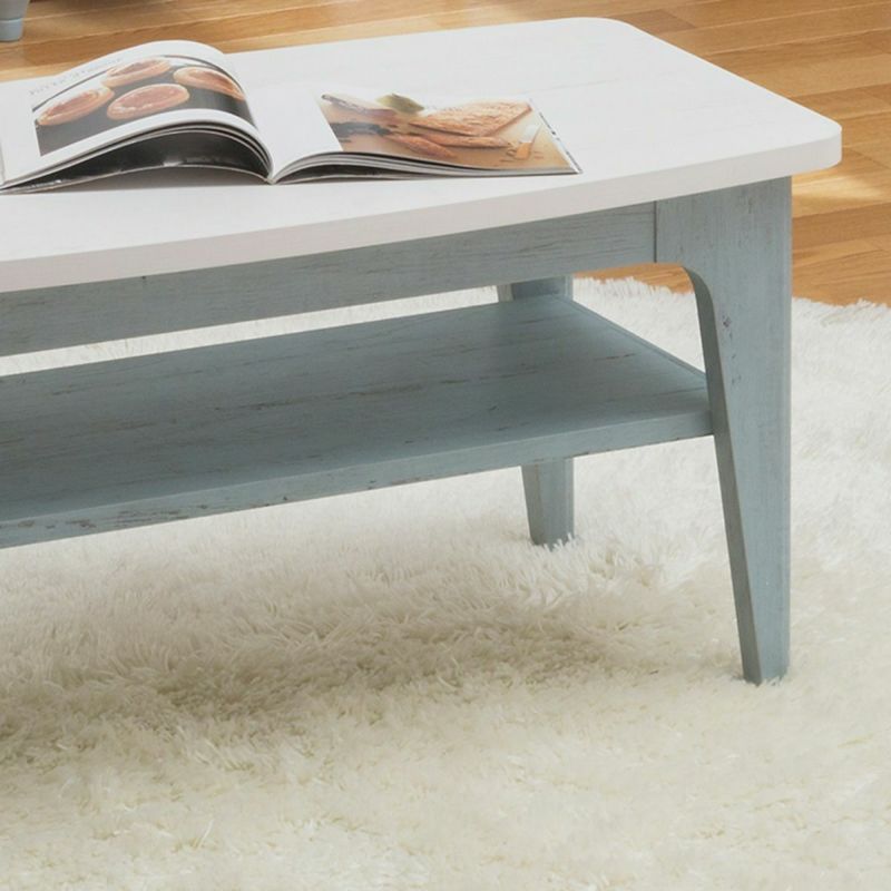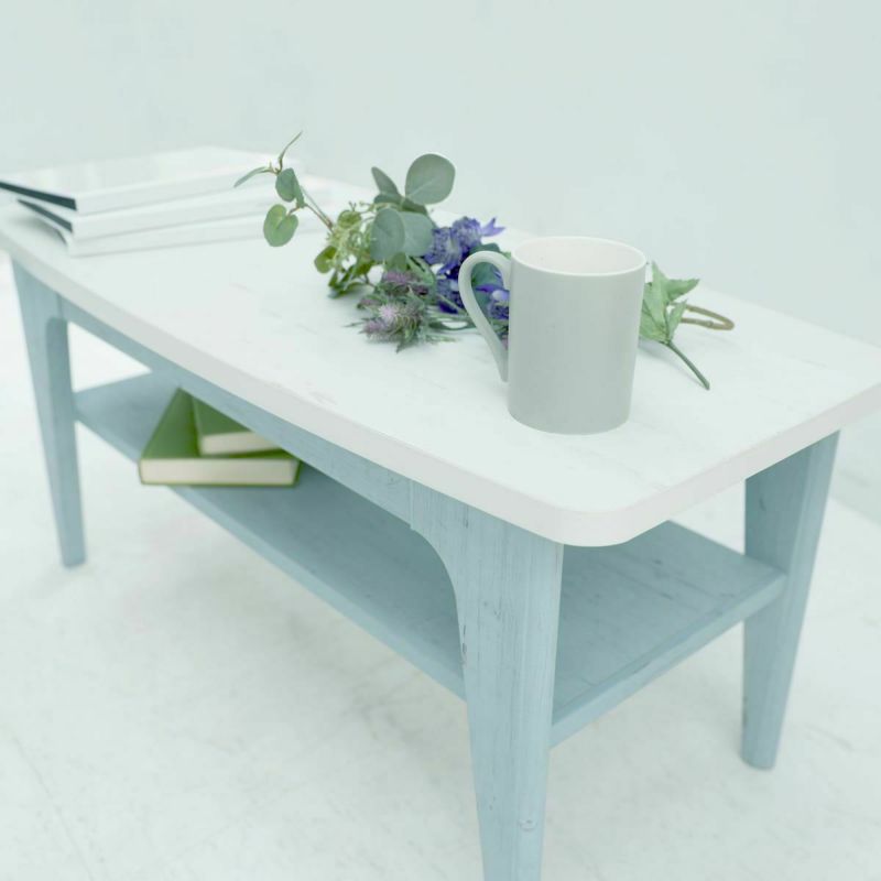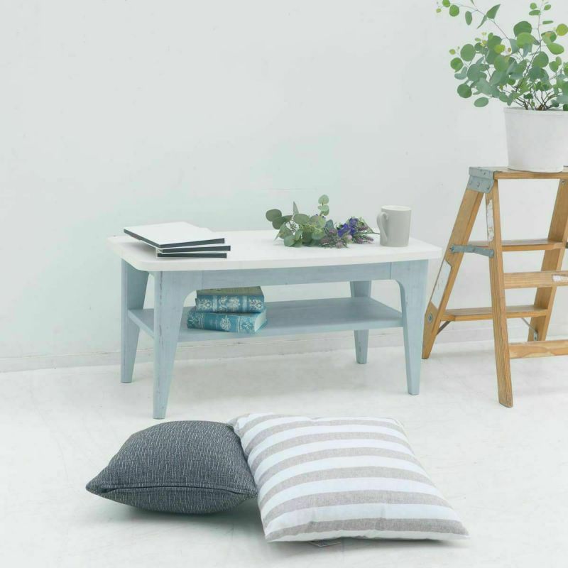 ローテーブル 幅80cm 高さ39cm ブルー ホワイト 白木目 フレンチテイスト 机