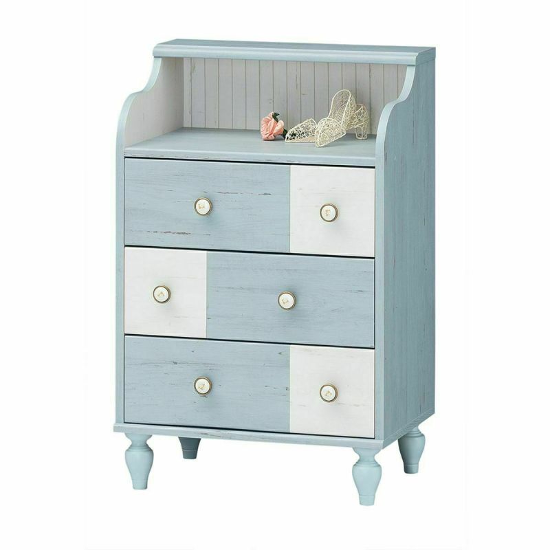 チェスト タンス 幅57cm 高さ89cm ブルー ホワイト 白木目 フレンチテイスト 衣類収納