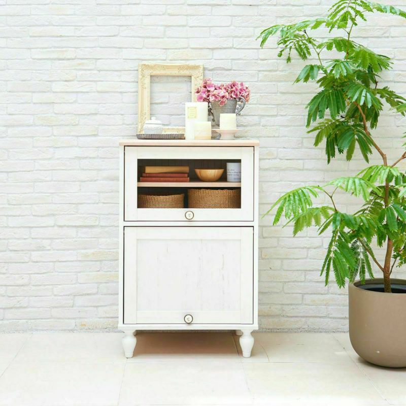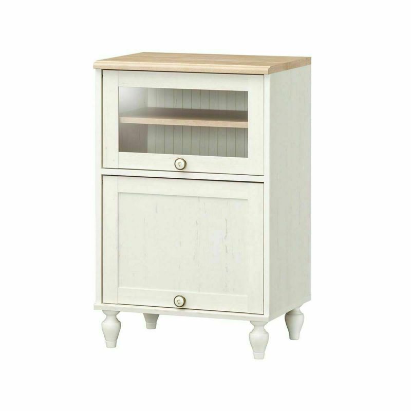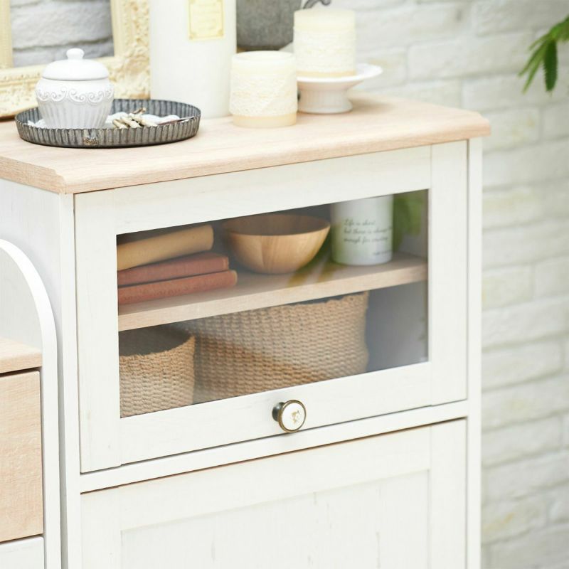 キャビネット 棚 幅57cm 高さ89cm ホワイト 白木目 ナチュラルブラウン フラップ扉 フレンチテイスト リビング 収納