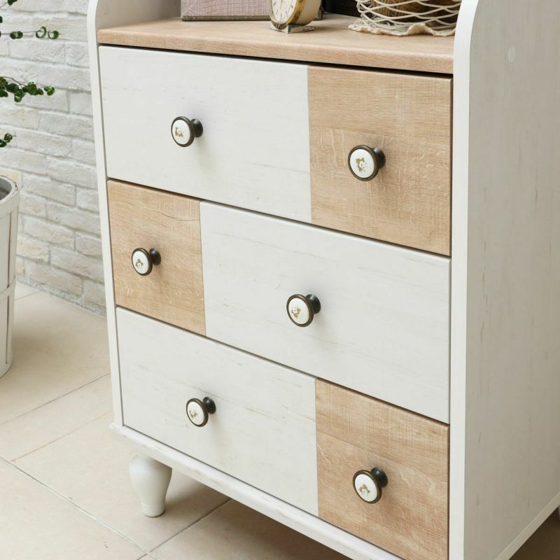 チェスト タンス 幅57cm 高さ89cm ホワイト 白木目 ナチュラルブラウン フレンチテイスト 衣類収納