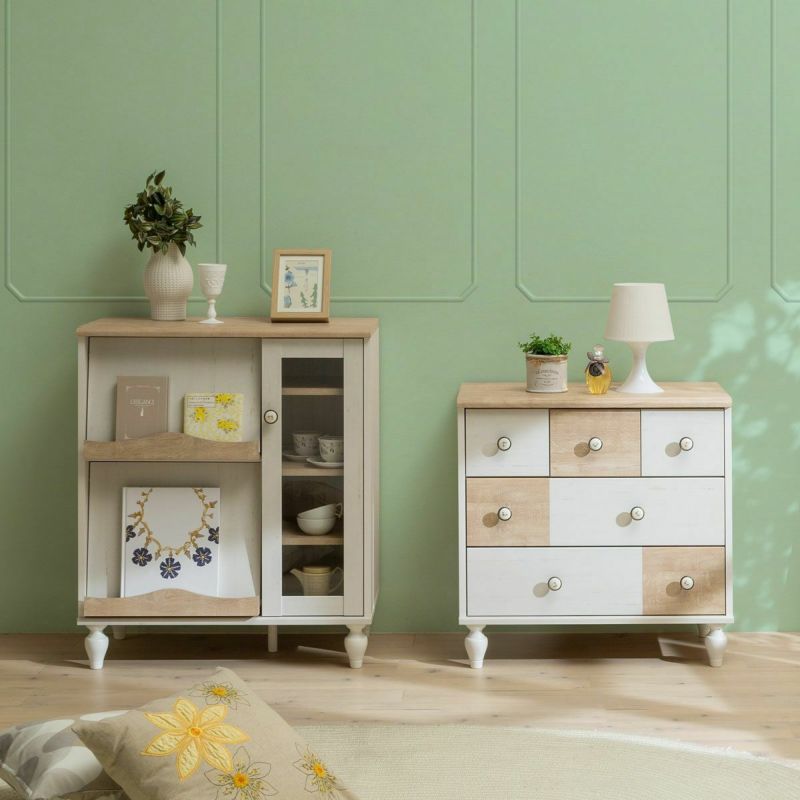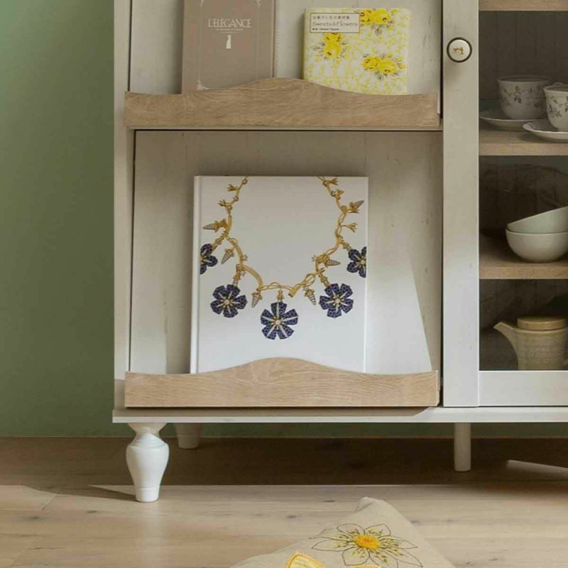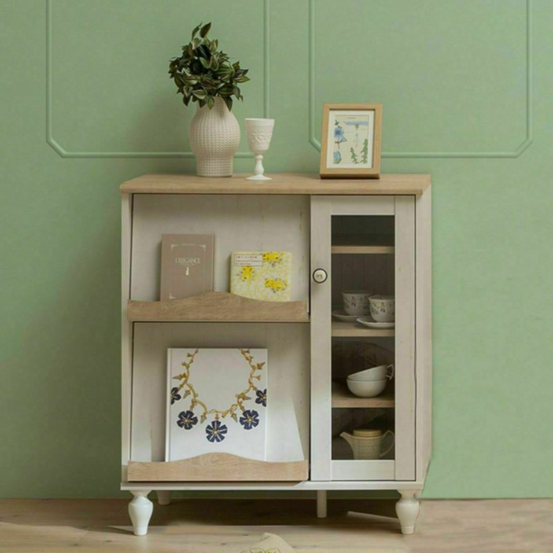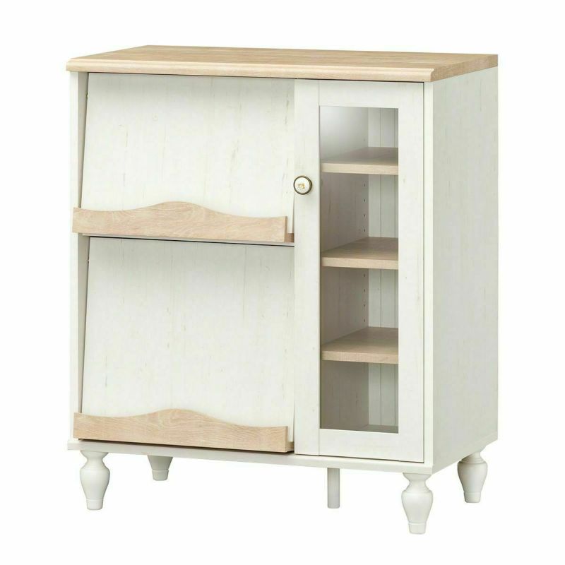 キャビネット 棚 幅76cm 高さ89cm ホワイト 白木目 ナチュラルブラウン フラップ扉 ガラス扉 フレンチテイスト 本棚