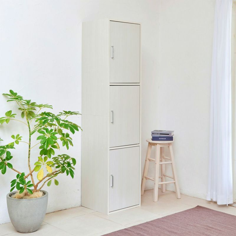 収納棚 ラック 幅43cm 高さ180cm ホワイト 白木目 扉付 整理棚 3ドア
