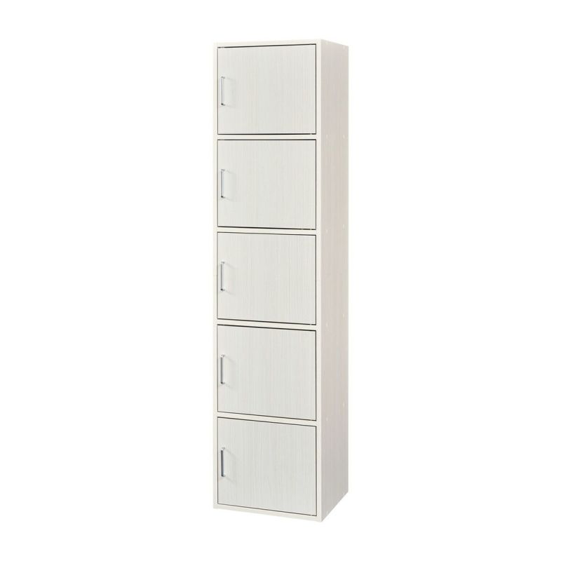 収納棚 ラック 幅43cm 高さ180cm ホワイト 白木目 扉付 整理棚 5ドア