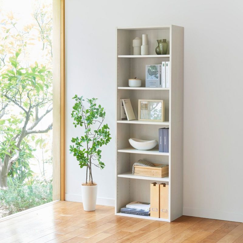 フリーラック 幅59cm 高さ180cm ホワイト 白木目 本棚 シェルフ