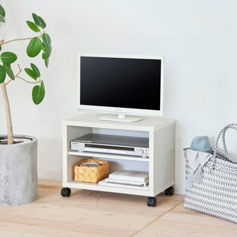 テレビ台 幅51cm 高さ40cm ホワイト 白木目 19V型対応 キャスター付 背面化粧有 TVボード