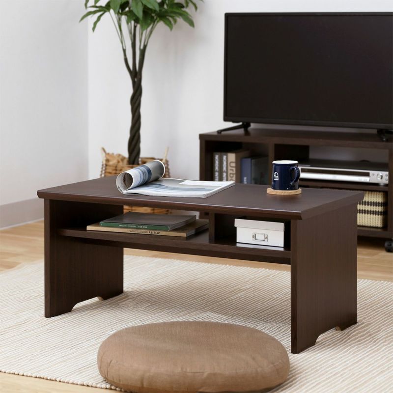 テーブル 机 幅81cm 高さ37cm ダークブラウン 中棚付き