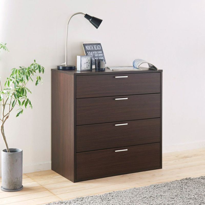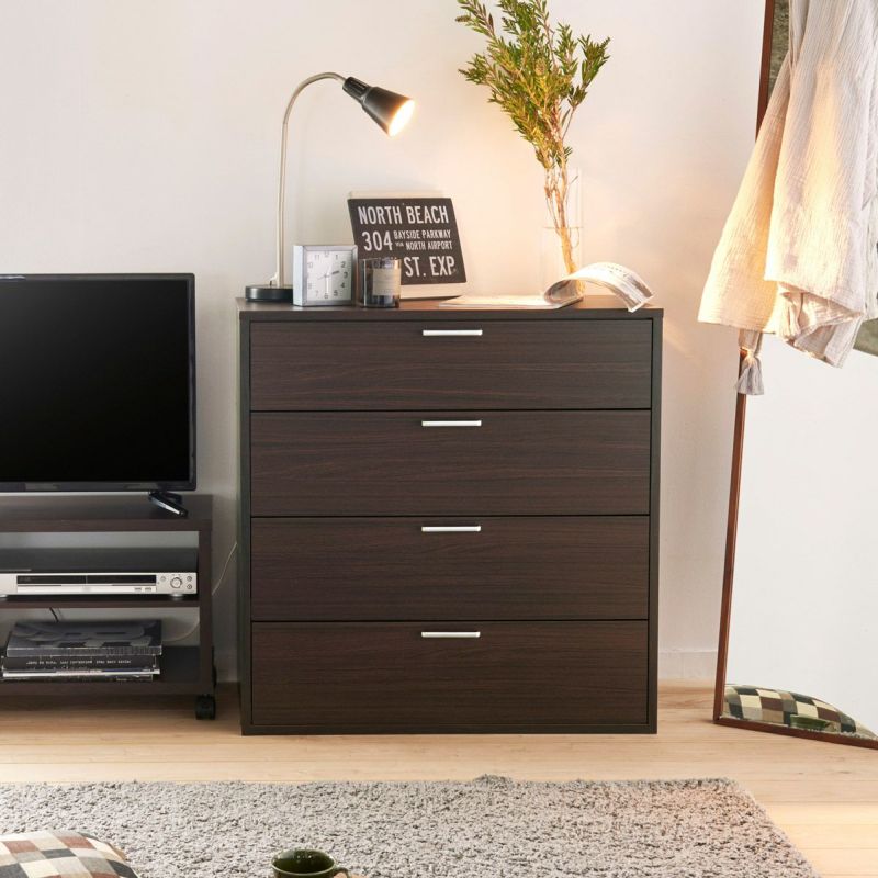 チェスト タンス 幅79cm 高さ80cm ダークブラウン ワイドタイプ 引出4段 衣類収納