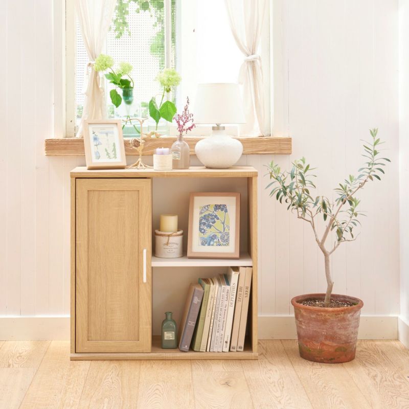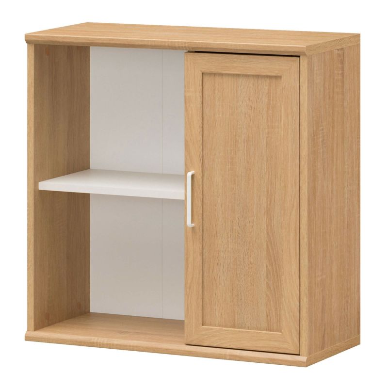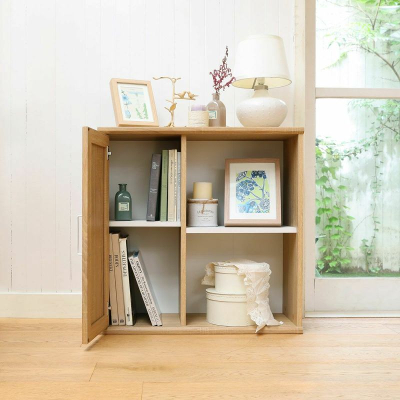 キャビネット 棚 幅72cm 高さ72cm ナチュラルブラウン ホワイト 白 扉付 反転可能 本棚 リビング 収納