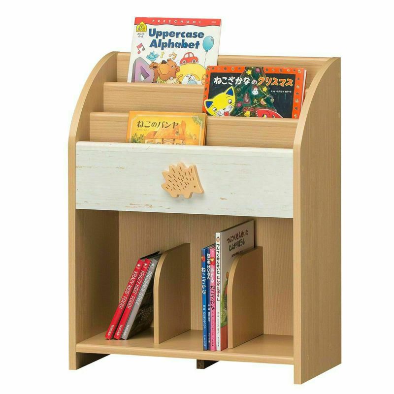 絵本棚3段 ラック 幅57cm 高さ70cm ナチュラルブラウン ホワイト 白木目 北欧テイスト 子供 収納