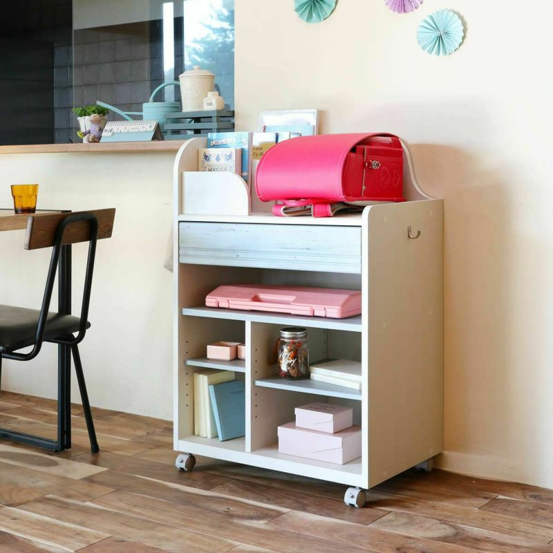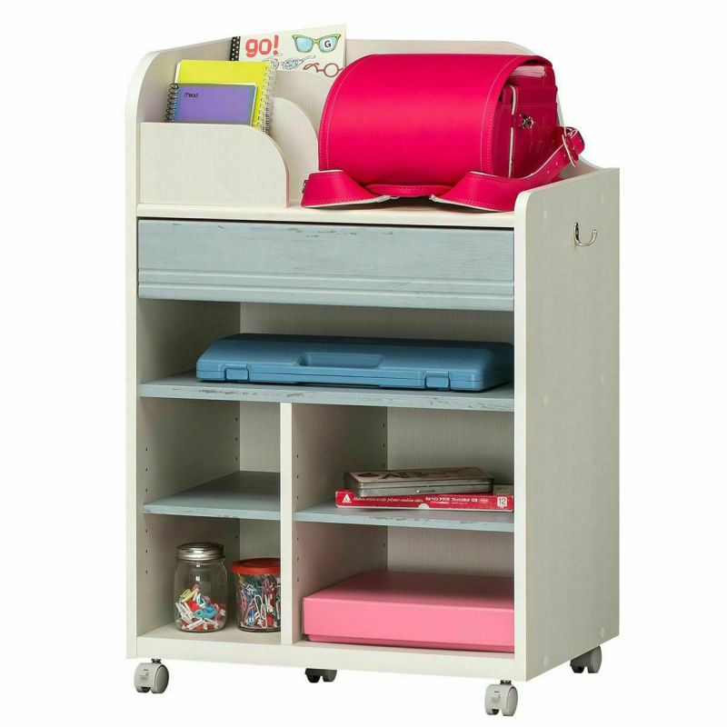 ランドセルラック 幅63cm 高さ94cm ホワイト 白木目 ブルー ランドセルの色にマッチする 学童 収納 キャスター付