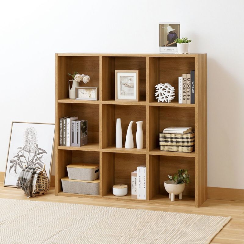 どんな使い方でも美しく、部屋で存在感を放つラックを目指してデザインしました。棚1マスは幅も高さも38.2cmの正方形。お部屋の空間もきれいに整った印象になります。天地板・中棚・側板のすべての板が同じ厚さで統一されているので、より整った印象を与えて正方形の美しさを際立たせます。