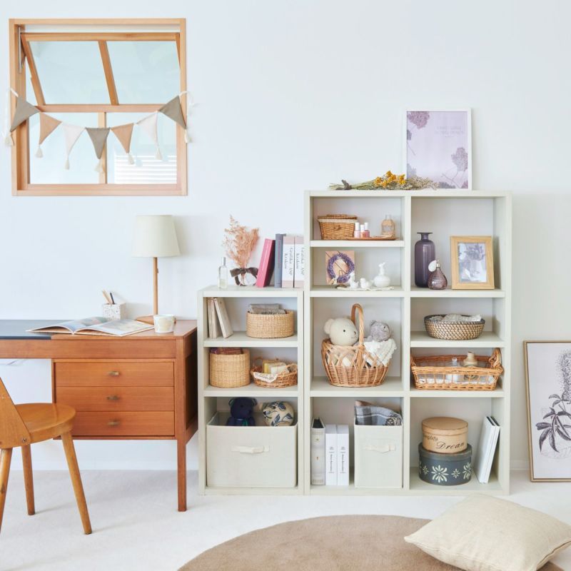 フリーラック アイボリー マス目ラック 飾り棚 本棚 シェルフ 横置き可 [幅84cm]