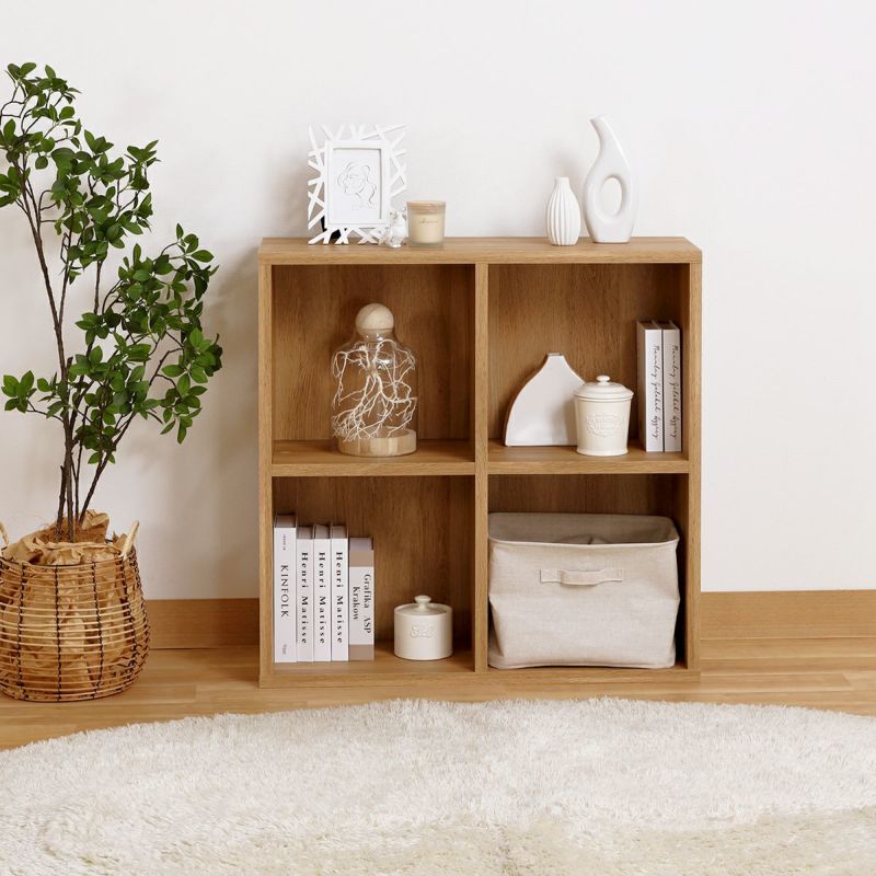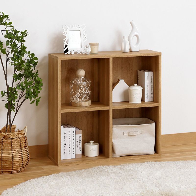 フリーラック ナチュラルブラウン マス目ラック 飾り棚 本棚 シェルフ 横置き可 [幅84cm]