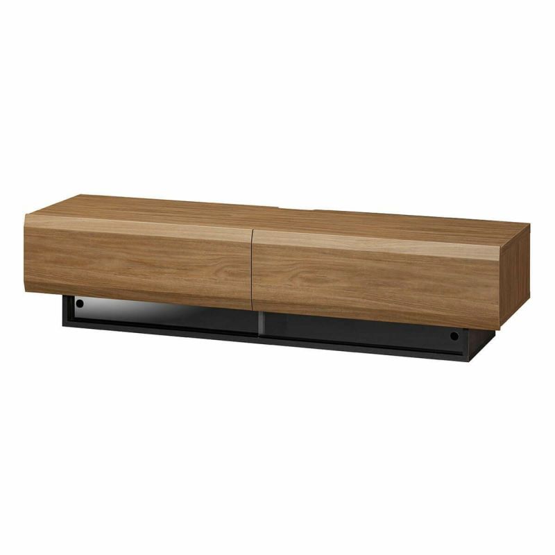 一本の丸太をイメージした木質感のあるテレビ台です。DVDの収納ゾーンを下段棚に設置したことで、浮いているように見えるデザインとなっています。大型テレビに対応する幅約150cmで、65V型までのテレビが置けます。頑丈なスライドレールの大きな引き出し2杯には、DVDのタイトル面を上にして左右それぞれに約33枚、計66枚を収納できます。引き出しは奥のものも簡単に取り出すことができるフルスライドレールです。引き出しの右側には、Wifiルーターや、Switch・Wiiなどの縦置きのゲーム機が入るスペースがあります。背板がないから熱気が背面から抜けて、DVDプレイヤーやゲーム機の排熱による熱ごもりを防ぎます。BDやDVDプレイヤーの収納も、引き出しの下に収納できます。引き戸はガラス戸を採用しているので、リモコンの通りも問題ありません。引き出し前板の縁は丸みをもたせ、ボリューム感と安心感を表現しました。お子さまのいるご家庭でも、安心して使用できます。背面には配線穴を設けています。壁にぴったりつけられるので、テレビ台の裏にほこりが溜まりません。電源線をひきやすくキレイに収納できるように、電源タップの収納ゾーンや配線穴を設けています。