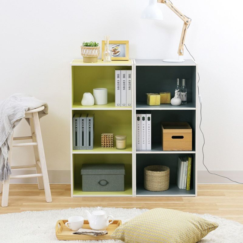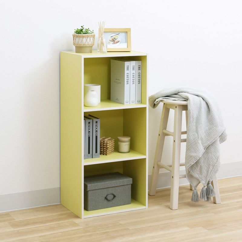 カラーボックス 3段 棚 幅42cm 高さ89cm くすみイエロー 横置き可