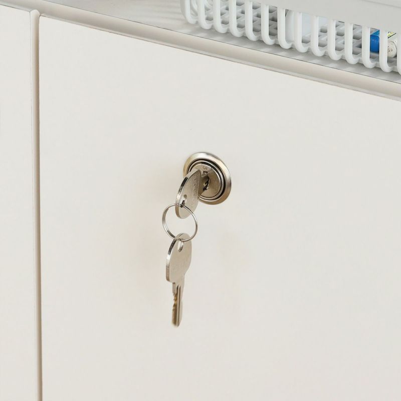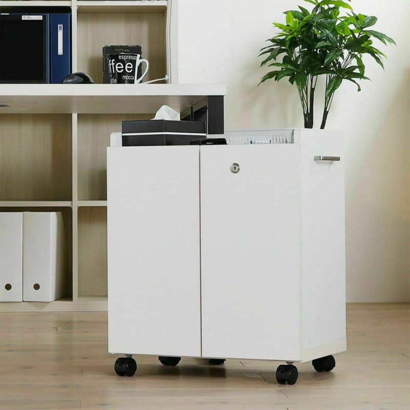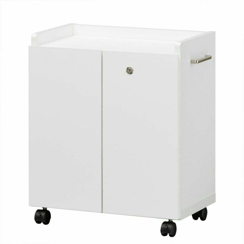 サイドワゴン ラック 幅50cm 高さ60cm ホワイト 白 鍵 扉 キャスター付 オフィス 収納