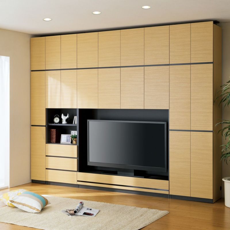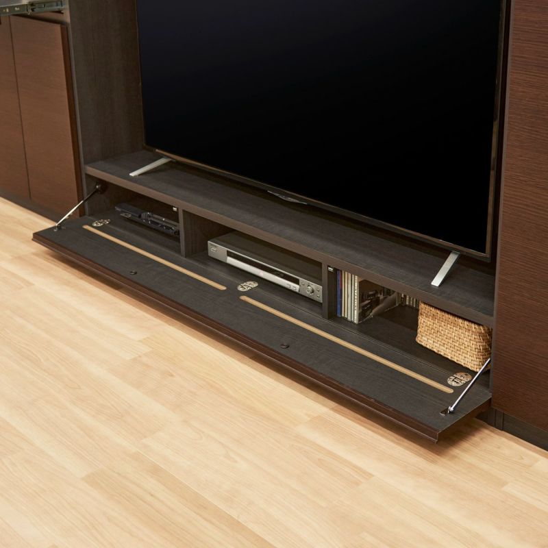 国産 壁面収納 テレビ台 幅150cm 高さ180cm ナチュラルブラウン 65V型対応 巾木よけ 配線穴 耐震ラッチ ダンパー付扉
