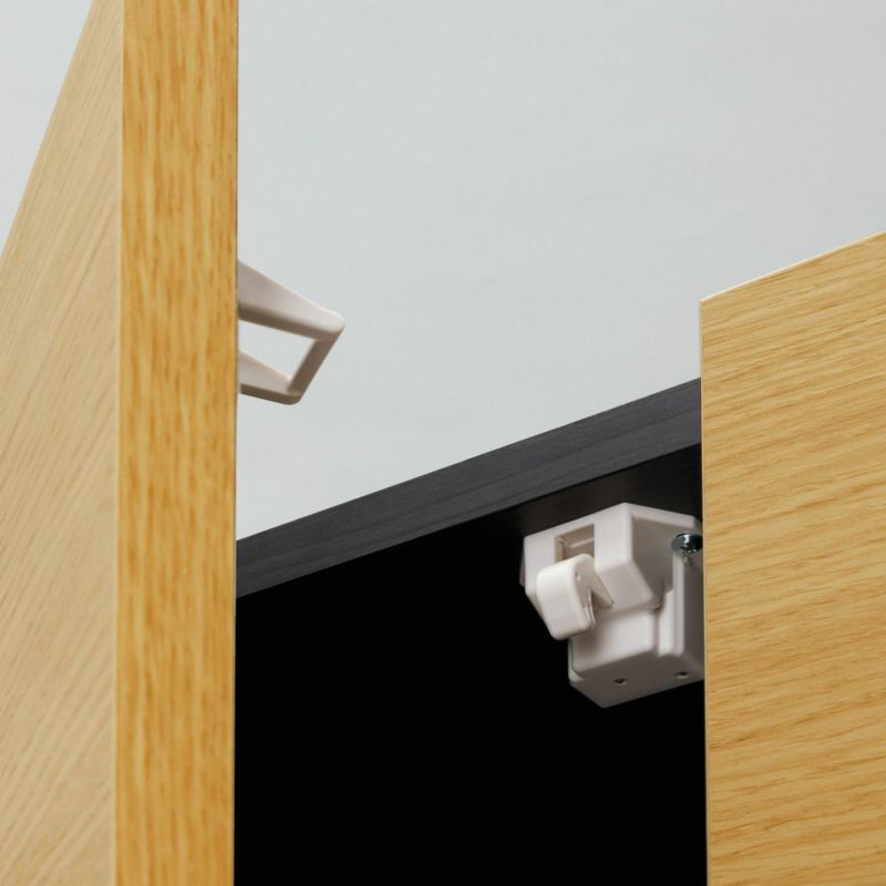 扉は組立時に左右開きを選択できます。扉は上下の2枚扉です。