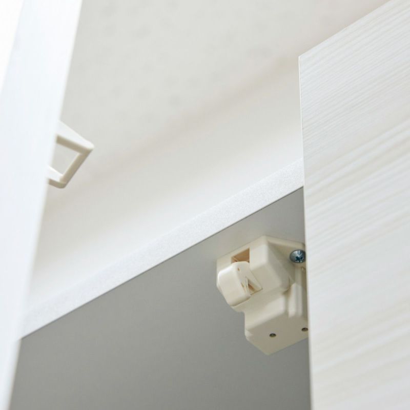 上部の扉は耐震ラッチ付き。地震などの振動で扉が開くことを防いでくれる、安心機能です。扉がゆっくり閉じるダンパー機能付き。静かに扉を開閉できます。棚ストッパーで移動棚を固定できるので、不注意で棚が落ちることがなく安心して使うことができます。移動棚と背面板との間に空間があり、配線を下に引くことができます。下に引いた配線は、最下段の側板にある配線穴から外に出すことができます。また、同シリーズの商品と左右連結をしたときも側板の配線穴から左右に配線できます。配線穴に設置する配線キャップ付きです。配線をしないときはキャップを閉じて穴を隠し、配線をするときはすっきりと見せることができます。高さ8.5cmの巾木よけカット加工がしてあるので、巾木をよけて設置できます。付属の「連結ボルト」で、左右に並べた商品同士を連結できます。商品間を隙間なくぴったりと設置することができます。ボルトを隠すキャップ付きです。家具と壁を固定して、地震などでの前倒れをしにくくする免震補助バンドが付属しています。