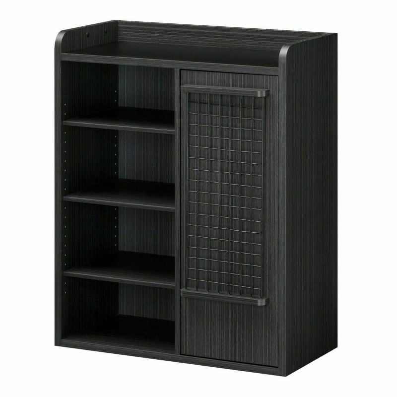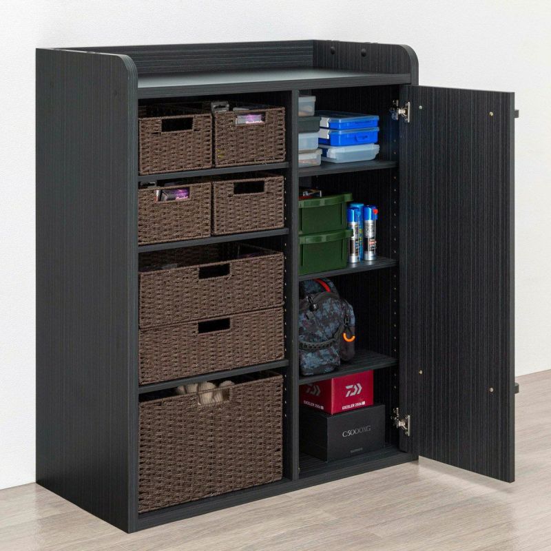 釣具収納 扉タイプ 幅80cm 高さ101cm ブラック 黒 木目 ディスプレイネット メラミン天板