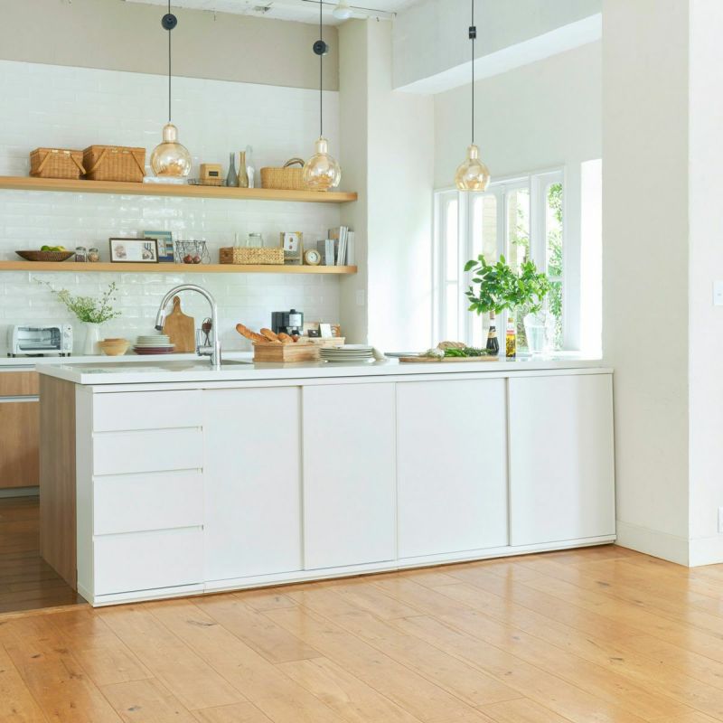 キッチンカウンター下のデッドスペースを収納に変えるカウンター下収納。キッチンやリビングダイニングにあふれた物をすっきり収納して整理されたお部屋にすることができます。