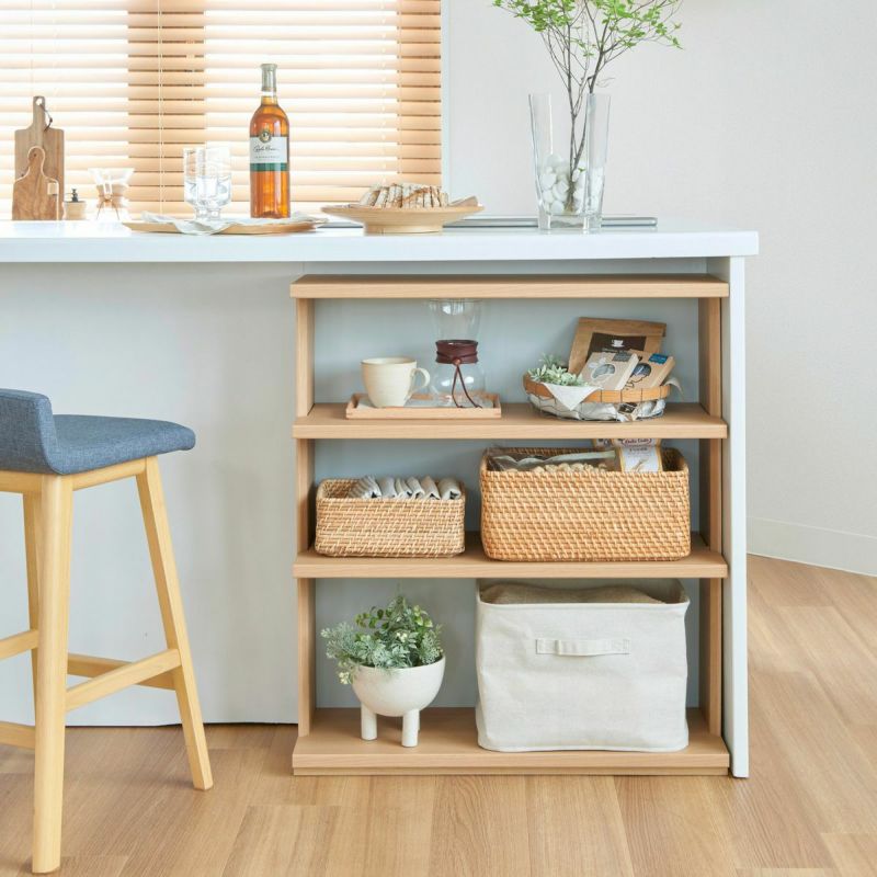 オープンラック 棚 幅75cm 高さ85cm ナチュラルブラウン カウンター下 シェルフ 本棚 収納