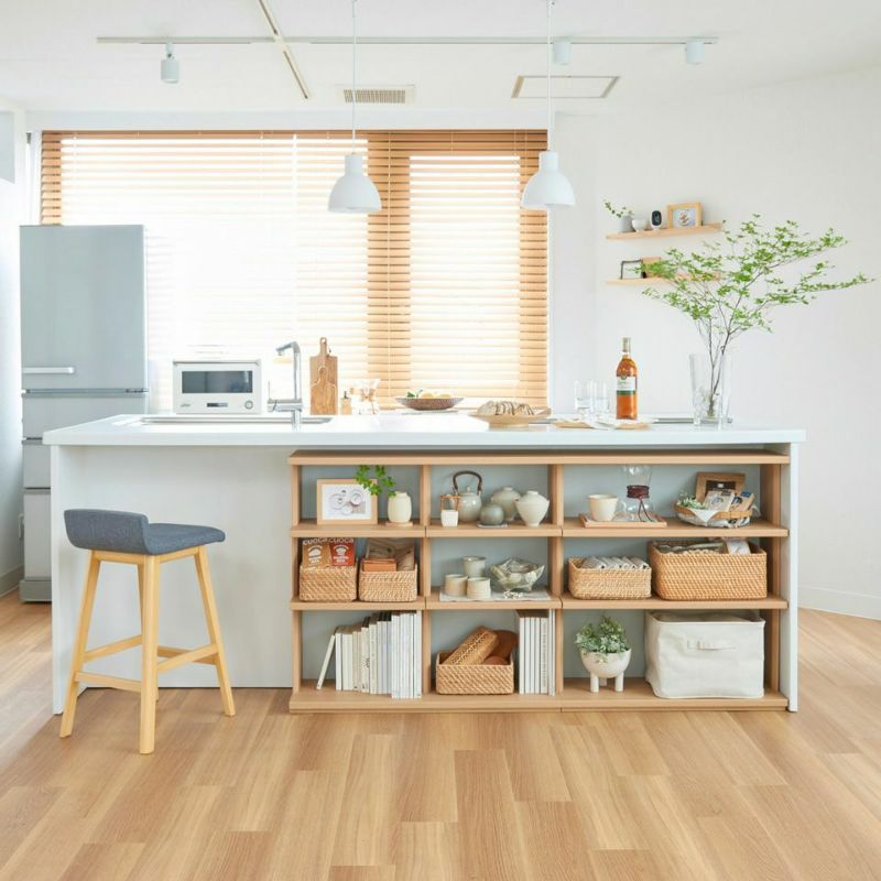 キッチンカウンター下のデッドスペースを収納に変えるカウンター下収納。キッチンやリビングダイニングにあふれた物をすっきり収納して整理されたお部屋にすることができます。2種類の幅を組み合わせて、カウンター下にぴったりの幅を選ぶことができるユニット収納です。複数を横に並べるときは、商品同士をネジでしっかり固定できるから安心です。ダイニング・キッチン雑貨を飾りながら収納できるオープンタイプ。見せる収納を楽しみたい方におすすめです。