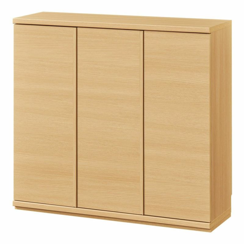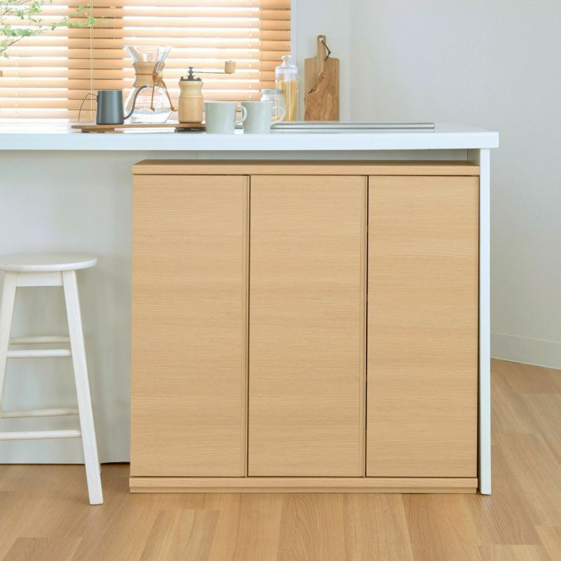 キャビネット 棚 幅90cm 高さ85cm ナチュラルブラウン カウンター下 プッシュ式扉 収納