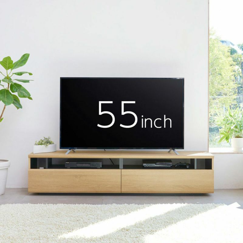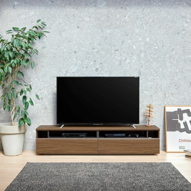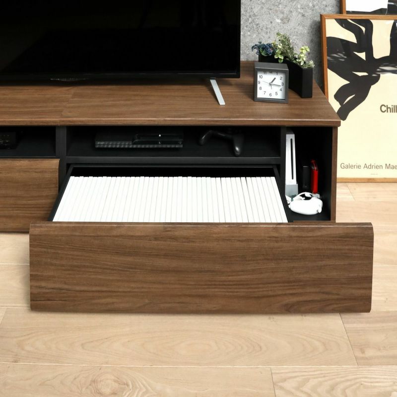 収納物に合わせた引き出し収納。AV機器の使いやすさを重視したデザインに仕上げました。大型テレビに対応する幅約180cmで、75V型までのテレビが置けます。