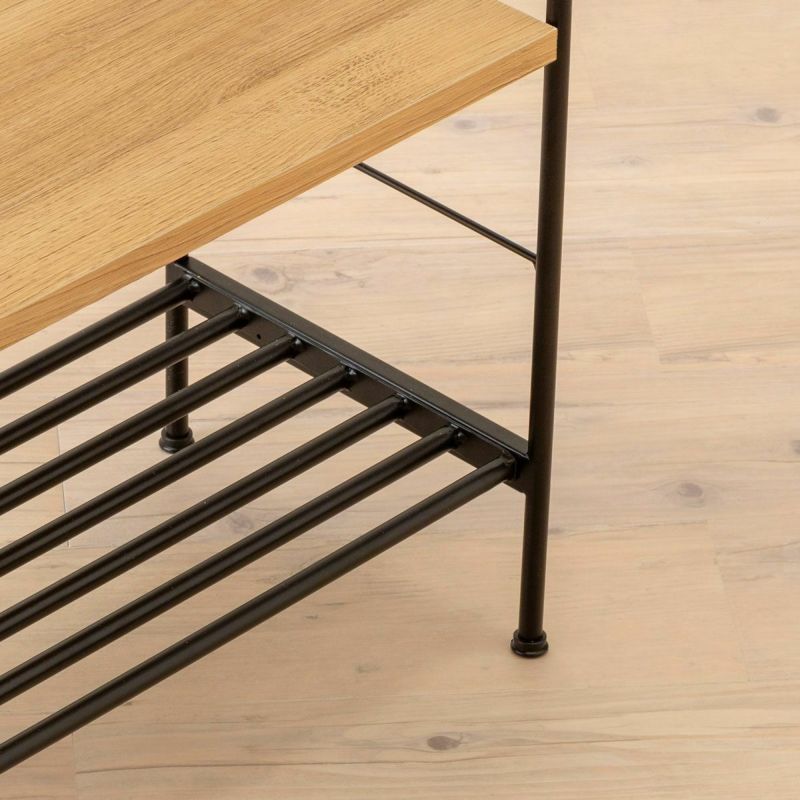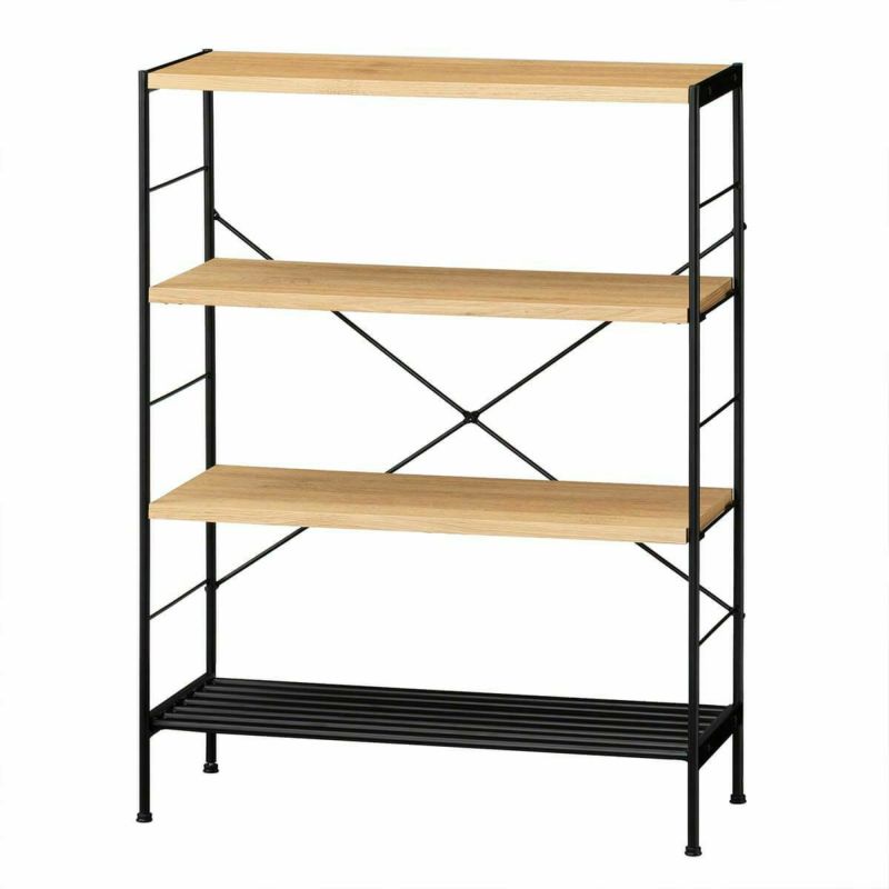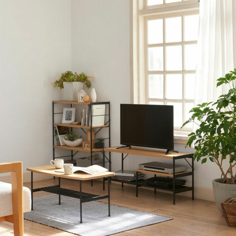 木のやわらかさと鉄の無骨さを掛けあわせた、甘辛MIXのインテリア。甘すぎず、ハードすぎず、木と鉄のちょうどいいバランスがおしゃれで新しいインテリアスタイルです。少し強めの木目と明るいナチュラル色が鉄の無骨さと相性抜群です。天然木に近い立体感を、表面のエンボス加工で表現しています。ブラック色がタフな印象を残しつつ、細くて丸みのある形がスタイリッシュな印象です。2枚の棚板は可動式。収納物に合わせて、高さを5か所から調節できます。設置は側板に掛けるだけなので簡単です。アジャスターを調整して、本体のがたつきを抑えることができます。背面も化粧がされているので、背面を壁につけずに使用することができます。フリーラックは4段ラック(高さ約120cm)、3段ラック(高さ約90cm)の2種類があります。オプションで組立サービス(有料)が選択できます。専門スタッフが組み立てた、組立済みの商品を玄関までお届けします。