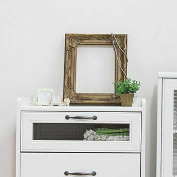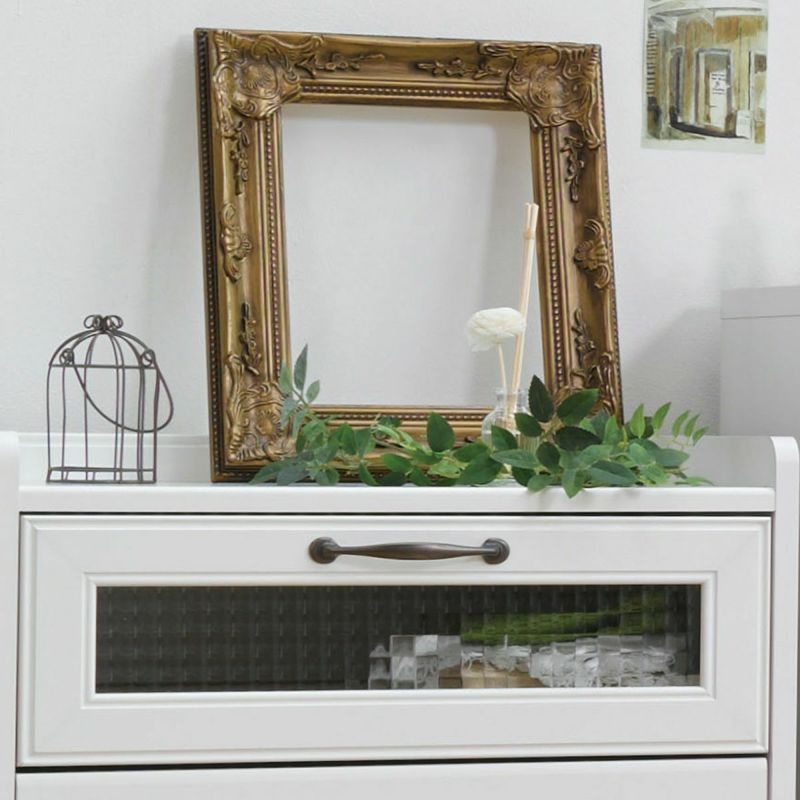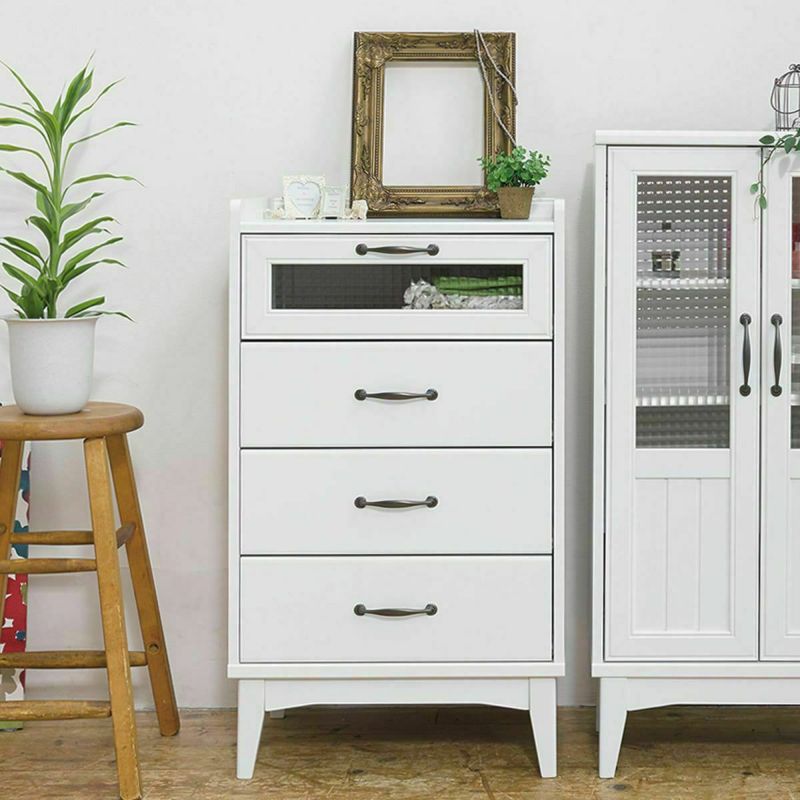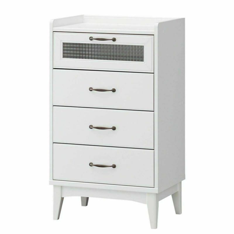 チェスト タンス 幅57cm 高さ98cm ホワイト 白 型ガラスの引出 レトロな取っ手 かわいいフット 衣類収納