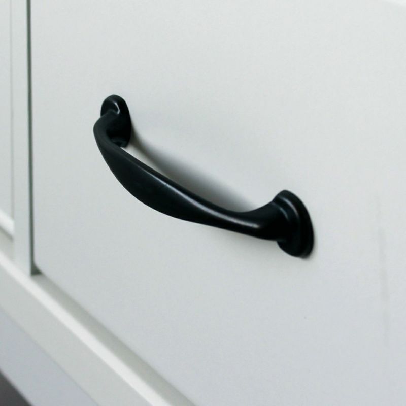 天板には、小物の背面への落下を防ぐこぼれ止めが付いています。一番上の引き出しはガラス付き。やわらかく中のモノを映す型ガラスです。レトロ風な質感と色味の取っ手。使い勝手にもこだわった開きやすいハンドルタイプです。