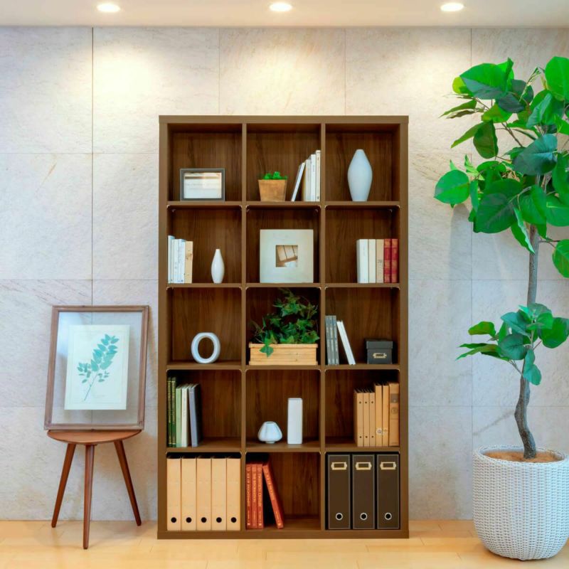 天板の厚み3.6cmのボリューム感は、無垢材をイメージさせます。棚板を均等に取り付けるとA4ファイルBOXがぴったり入るサイズ。A4書類や雑誌などを綺麗に整理する事ができます。