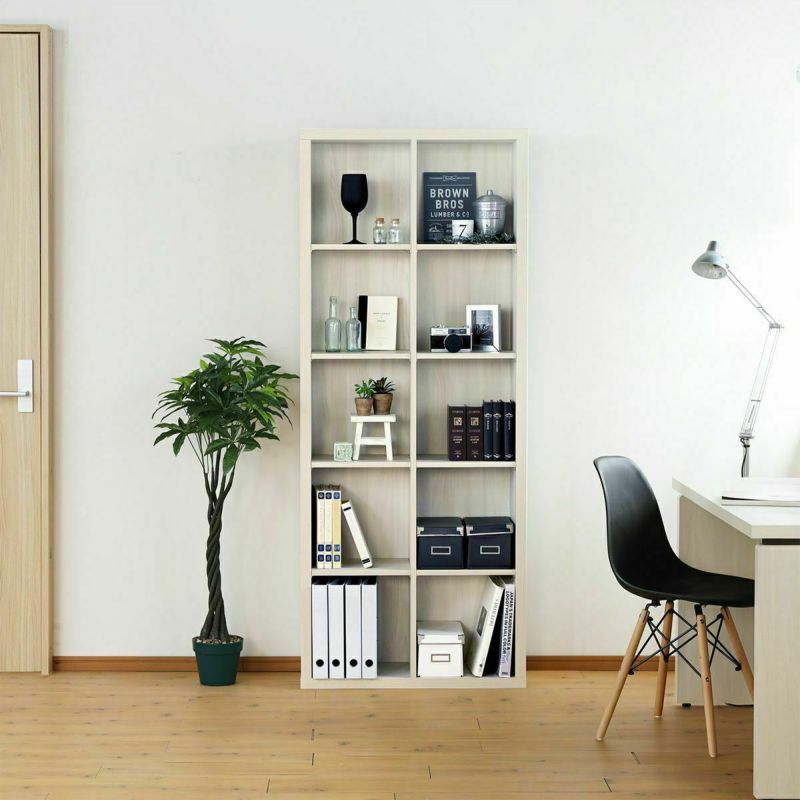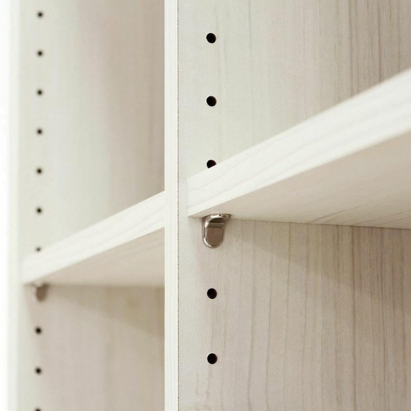 天板の厚み3.6cmのボリューム感は、無垢材をイメージさせます。棚板を均等に取り付けるとA4ファイルBOXがぴったり入るサイズ。A4サイズの書類や雑誌などがたっぷり収納できます。3cm間隔で高さを調節できる移動棚。収納物のサイズに合わせた高さにする事ができます。側板へ差し込む突起部にツメがあり、ツメが側板へ固定され本体の広がりを抑えます。扉の無いオープンタイプなので、おしゃれな雑貨を飾って楽しむこともできます。