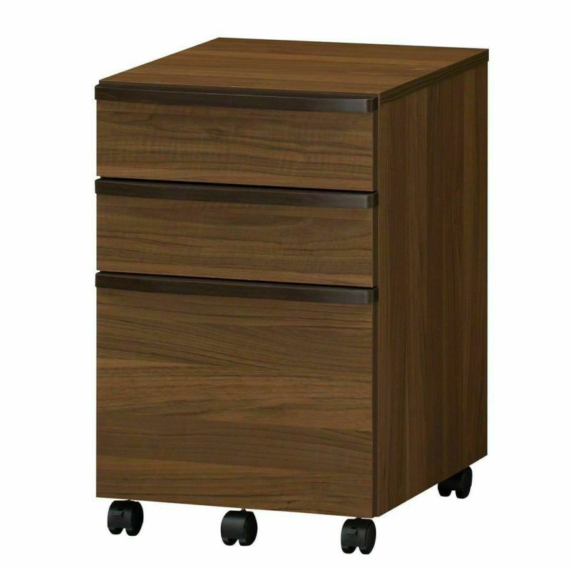 デスクサイドワゴン チェスト 幅41cm 高さ61cm ダークブラウン キャスター付 背面化粧有 オフィス デスク収納